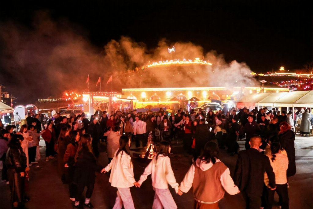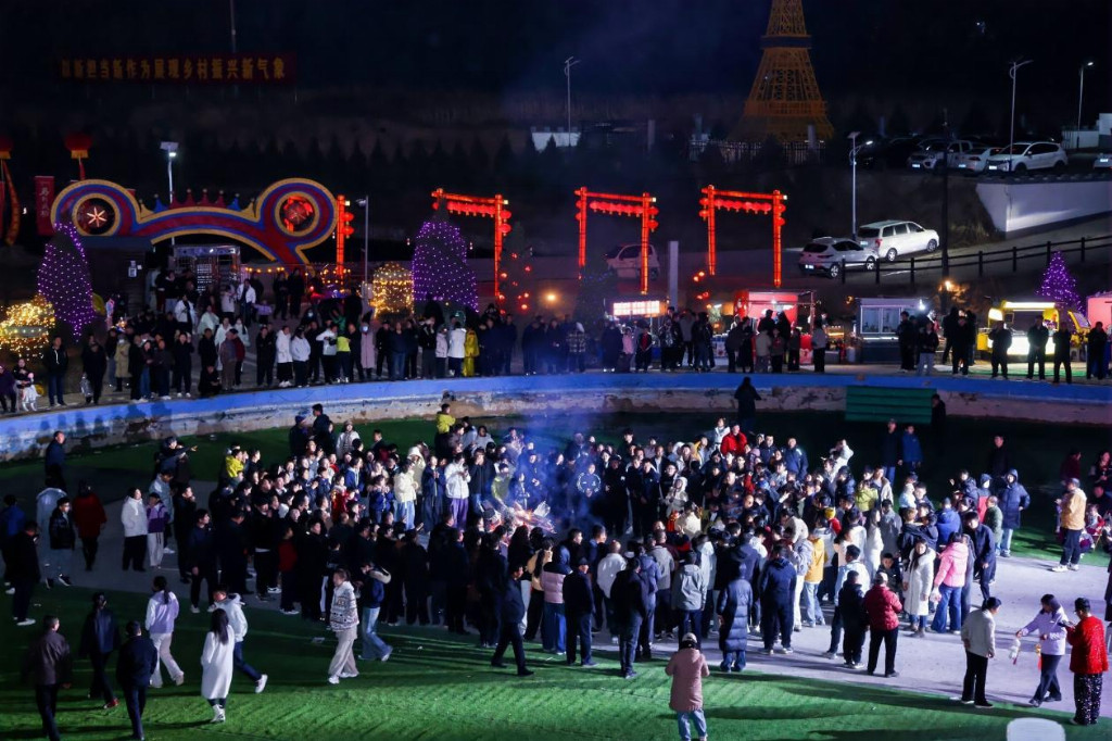 民俗非遗焕彩新生,古村乡韵彰显活力,让石楼新春更具烟火气与文化味。罗村镇泊河村打造的新春嘉年华活动贯穿整个新春假期,涵盖祈福仪式、晋剧演绎、秧歌擂台、象棋比赛、民谣摇滚音乐节、亲子游园、剪纸面塑体验、九曲黄河灯阵、元宵烟花秀等多元业态,推出各类特色活动百余场,凭借丰富的活动内容成为石楼“网红地”,日均接待车辆超3000辆,单日客流突破12000人次,人气爆棚。