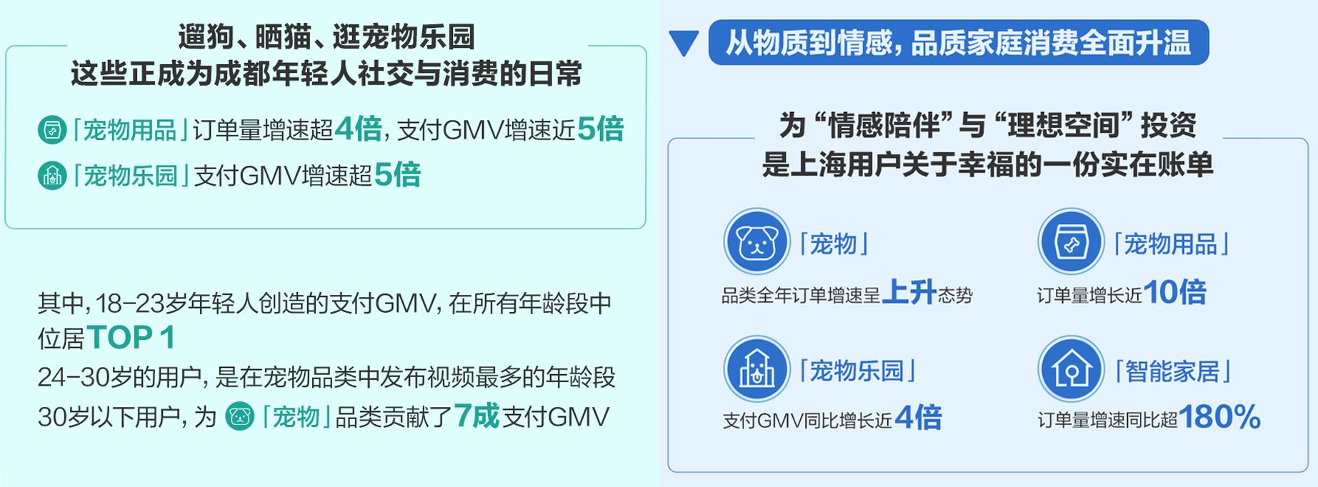 成都的宠物用品订单量上涨超4倍、销售额涨了近5倍,宠物乐园销售增速超5倍;上海的宠物用品订单增长近10倍,宠物乐园销售额涨了近4倍