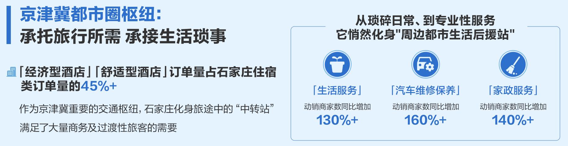 1小时交通圈的方便快捷,让石家庄满足商务出行及中转需求的住宿消费在平台快速增长,其中经济型与舒适型酒店订单量占比超45%。