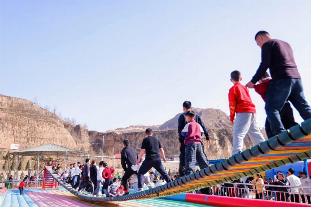 民俗非遗焕彩新生,古村乡韵彰显活力,让石楼新春更具烟火气与文化味。罗村镇泊河村打造的新春嘉年华活动贯穿整个新春假期,涵盖祈福仪式、晋剧演绎、秧歌擂台、象棋比赛、民谣摇滚音乐节、亲子游园、剪纸面塑体验、九曲黄河灯阵、元宵烟花秀等多元业态,推出各类特色活动百余场,凭借丰富的活动内容成为石楼“网红地”,日均接待车辆超3000辆,单日客流突破12000人次,人气爆棚。